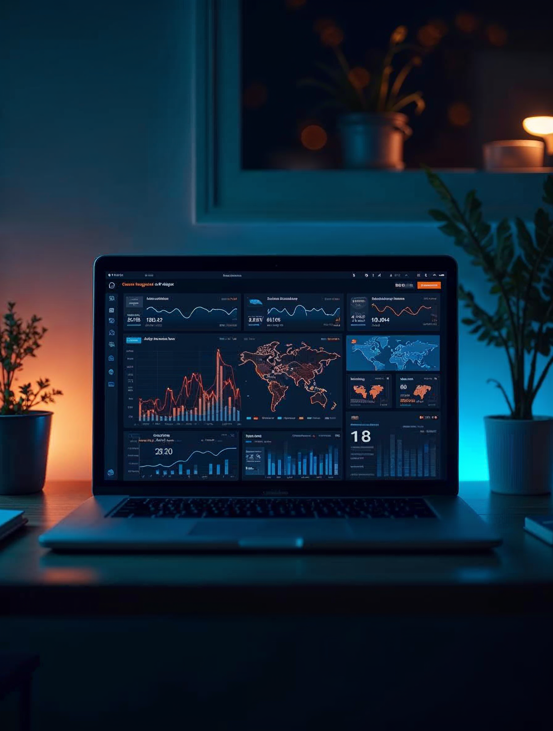 Digital marketing analytics dashboard with growth charts and AI-powered insights